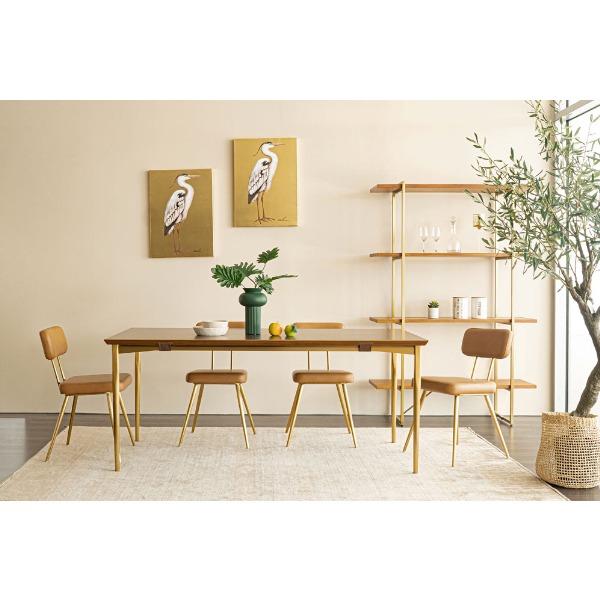 - Bàn ăn Maxine là một thiết kế tối giản với bốn chân inox màu gold thuôn dài mang kiểu dáng thanh thoát.