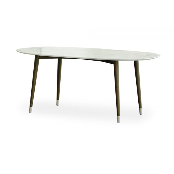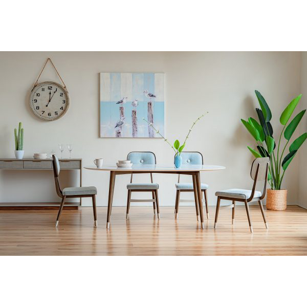 - Thiết kế dạng oval và phần chân thon gọn giúp tiết kiệm không gian phòng ăn.