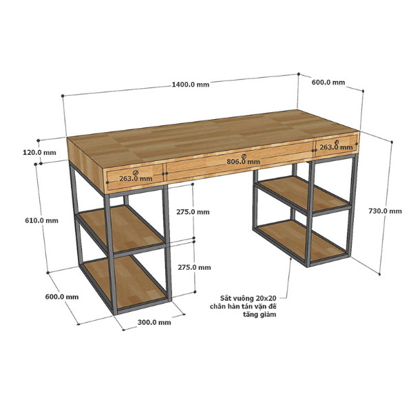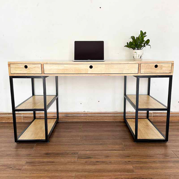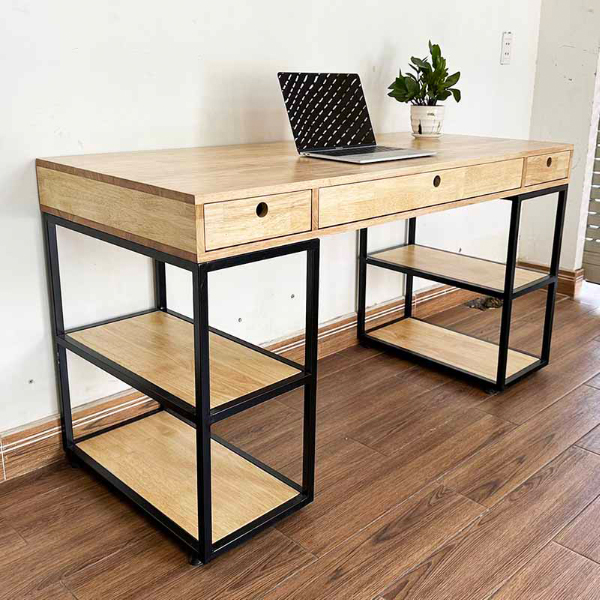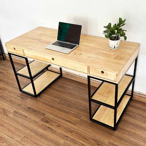 - Mặt bàn kích thước 140x60cm rộng rãi thoải mái bài trí vật dụng làm việc, thiết kế thông minh 3 ngăn kéo và mỗi bên chân bàn thành kệ sách 2 tầng tăng không gian lưu trữ tối đa.