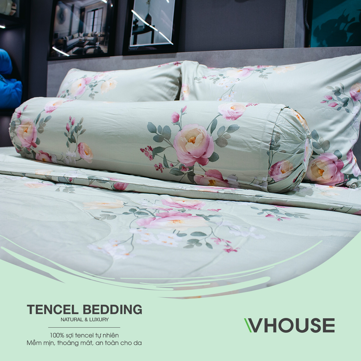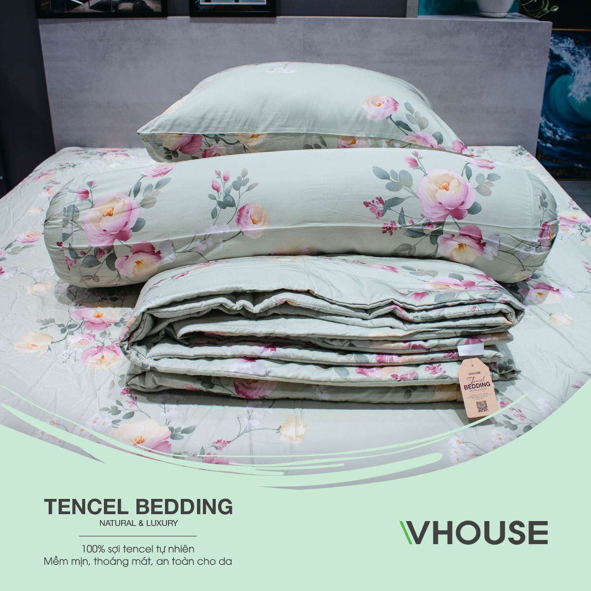 - Bộ drap giường có độ thông thoáng giúp thấm hút mồ hôi, không tích điện và kháng khuẩn cao.