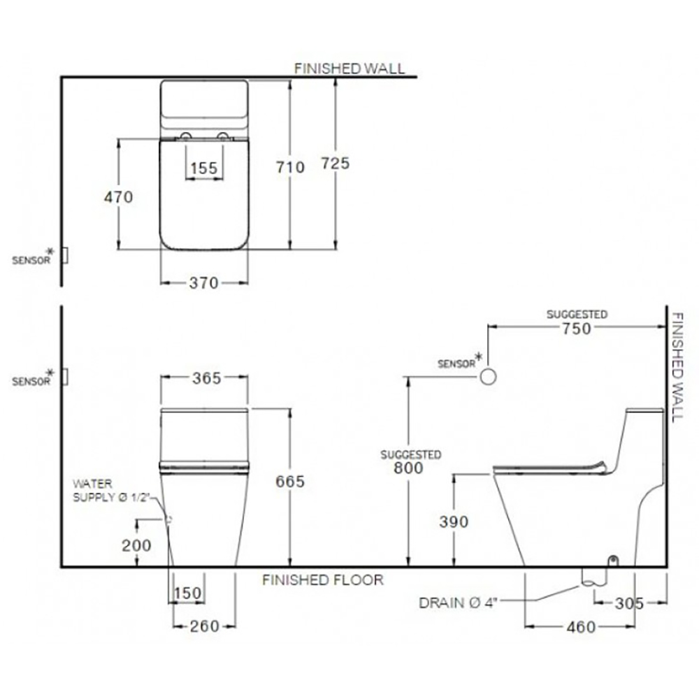 - Thiết kế: Thân vuông dài, thoát thẳng, tâm xả 305mm.