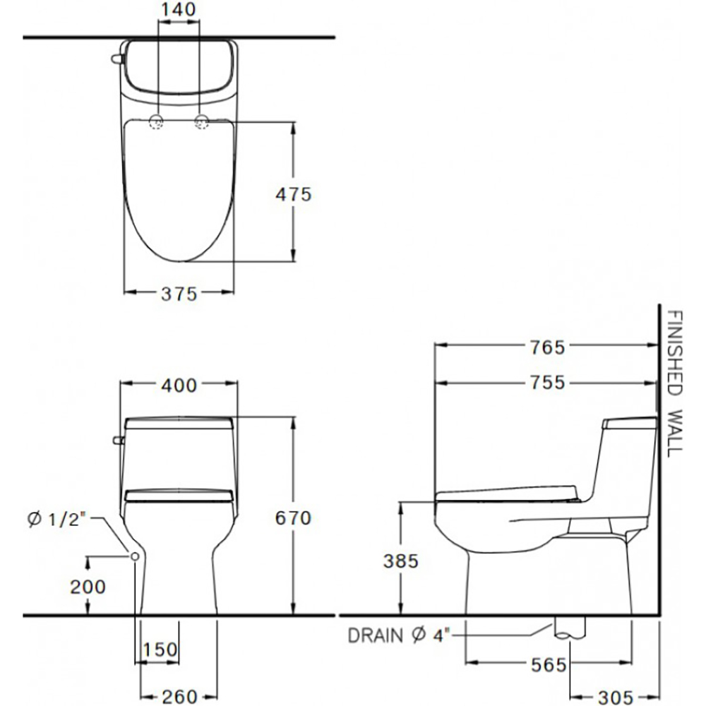 Bồn cầu một khối xả gạt kết hợp với nắp đóng êm, hệ thống xả Siphon Jet. (Giá đã bao gồm VAT)