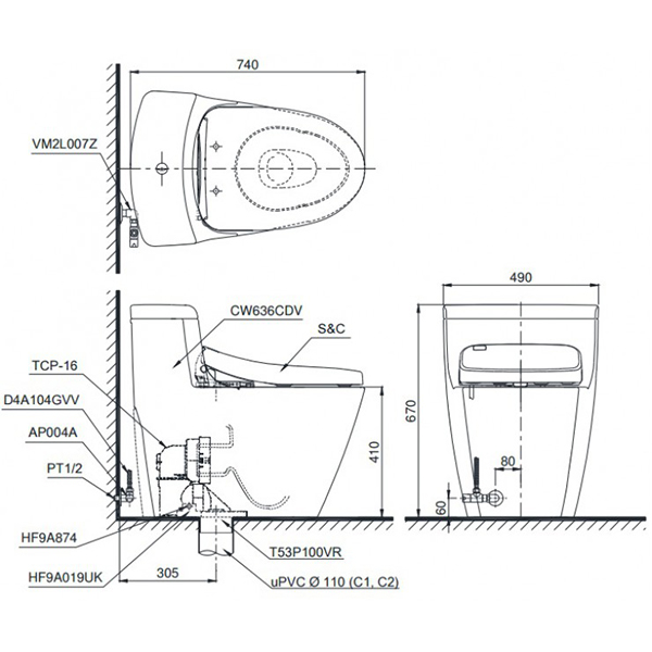 Bồn Cầu Một Khối TOTO - MS636DT2
