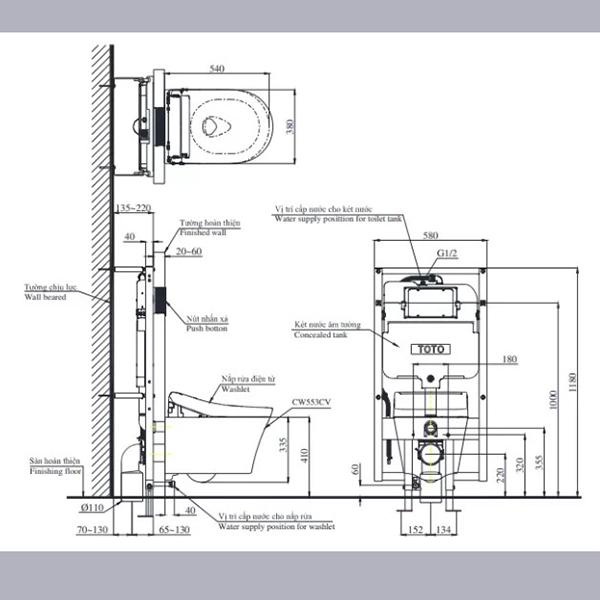 Bồn Cầu Một Khối Treo Tường TOTO - CW553C-TCF33370GAA-WH172AT-TCA465-MB170P#SS