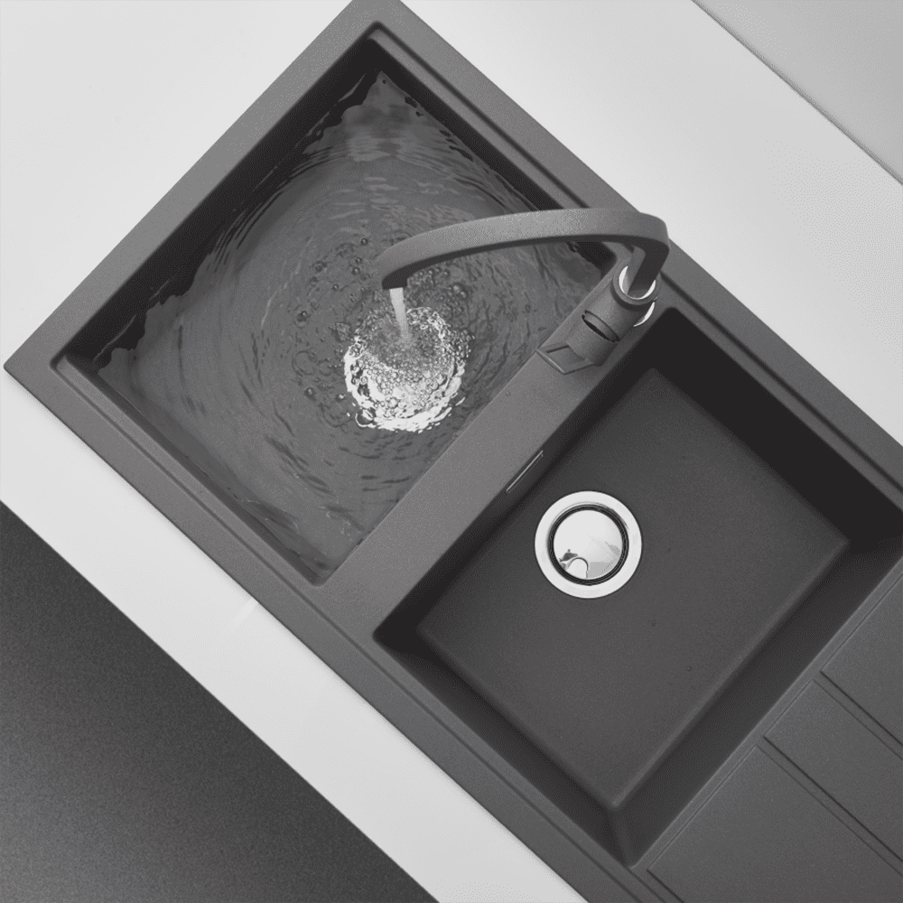 Bồn rửa chén được làm từ bột đá Granite tự nhiên, bề mặt phủ Nano bạc, diệt khuẩn 100%, nhập khẩu từ Ý. (Giá đã bao gồm VAT)