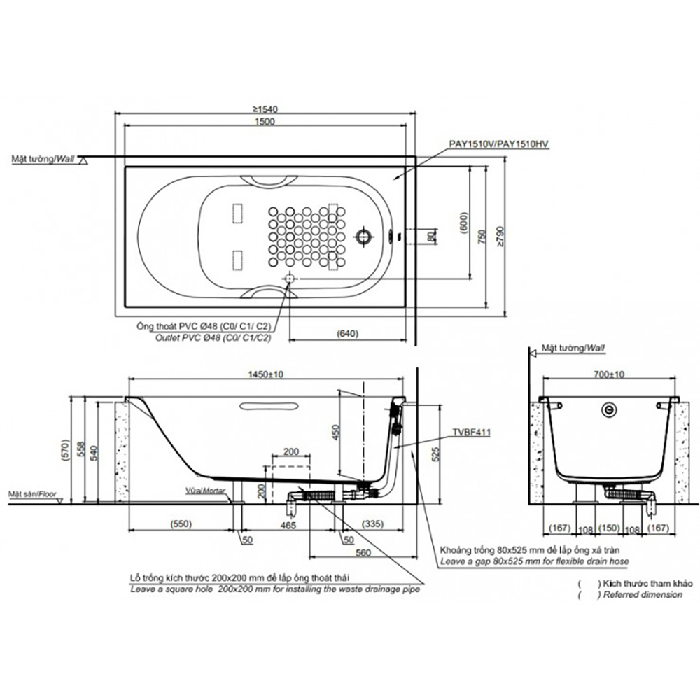 + Yếm bồn tắm.