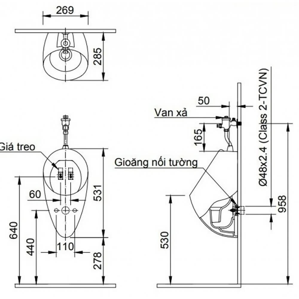 | Loại | Bồn tiểu nam treo tường |