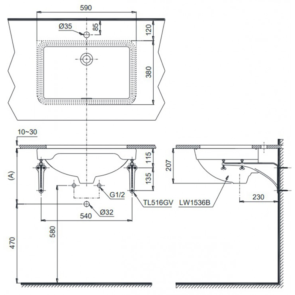 | Kích Thước Trên Chậu | L380mm | W590mm | H207mm |