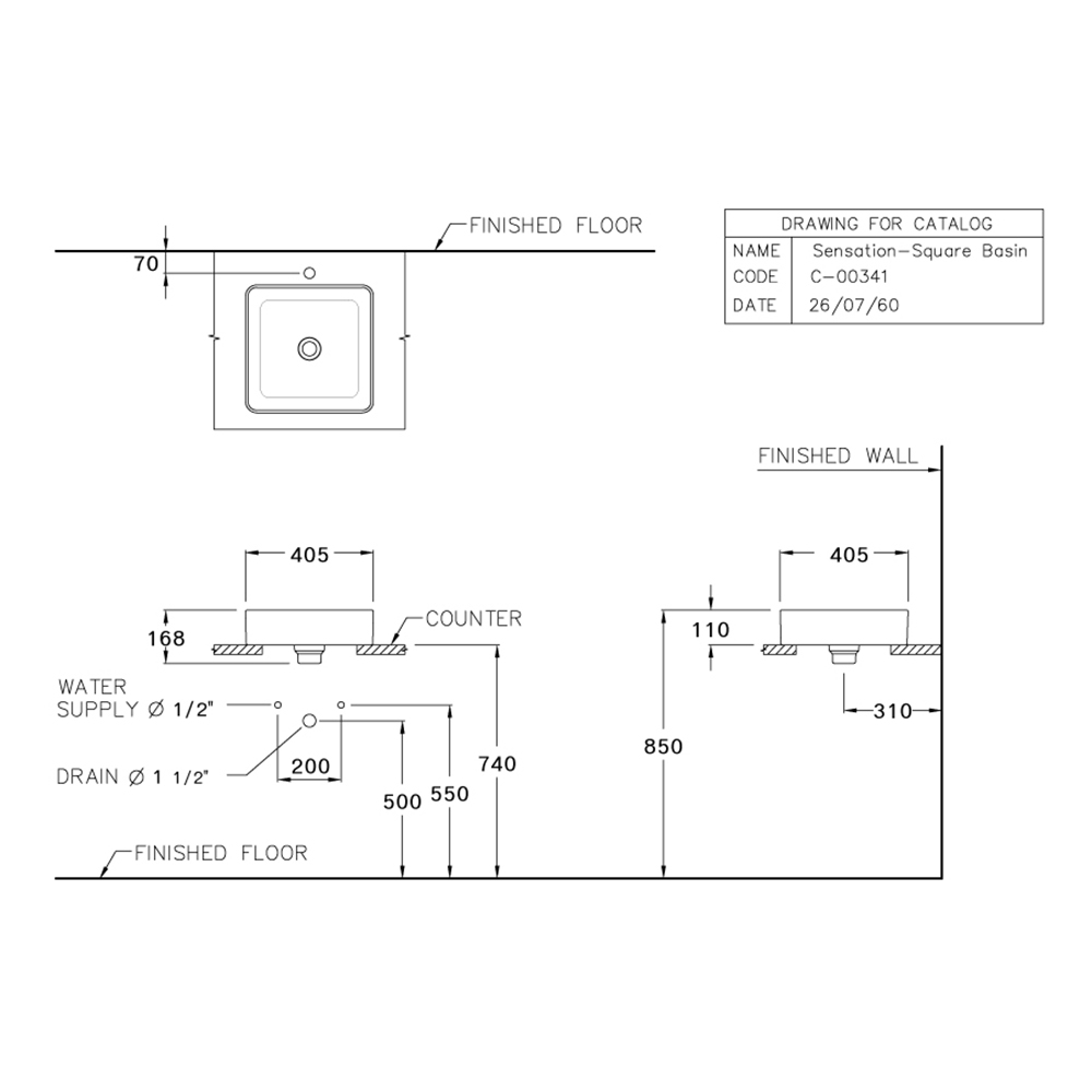 Kích Thước Trên Chậu    L405mm | W405mm | H168mm