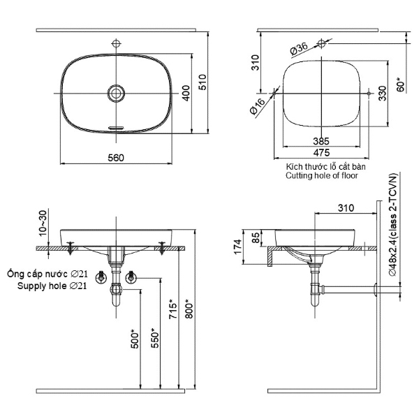 | Kích Thước | W 560mm | D 400mm | H 174mm |