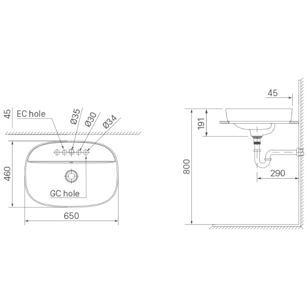 | Kích Thước | W 650mm | D 460mm | H 191mm |