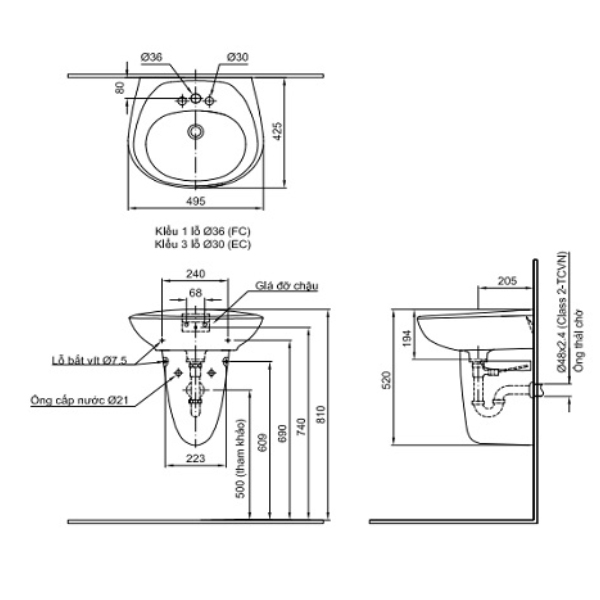 - Bản FC: Chậu 1 lỗ.