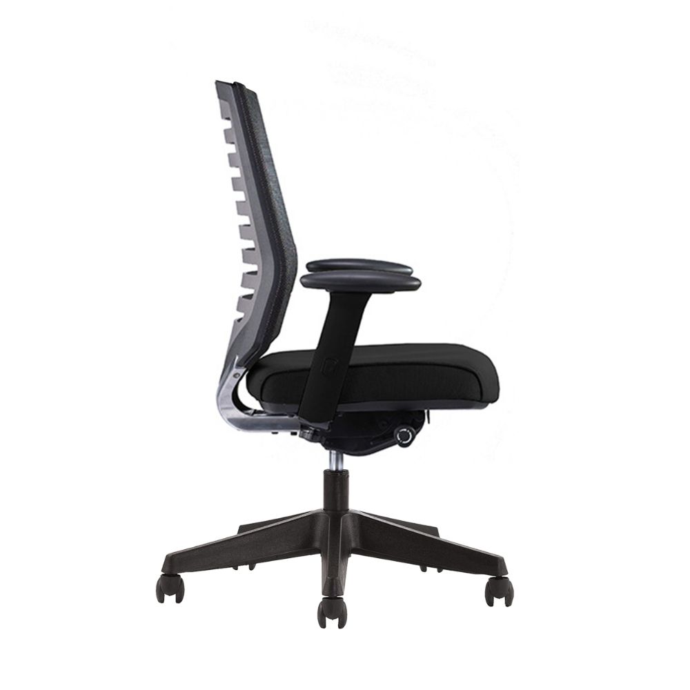 Tựa lưng: Lưng ghế nhựa cao cấp, bọc lưới thoáng mát. Thiết kế độc đáo xen kẽ giữa nhựa và những khoảng trống, tạo ấn tượng cho người nhìn.