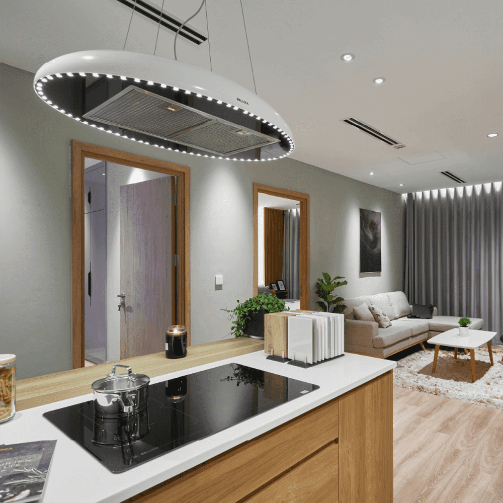 Máy hút mùi Malloca dành cho đảo bếp nhập khẩu Ý, điều khiển remote, công suất 600m³/h. (Giá đã bao gồm VAT)