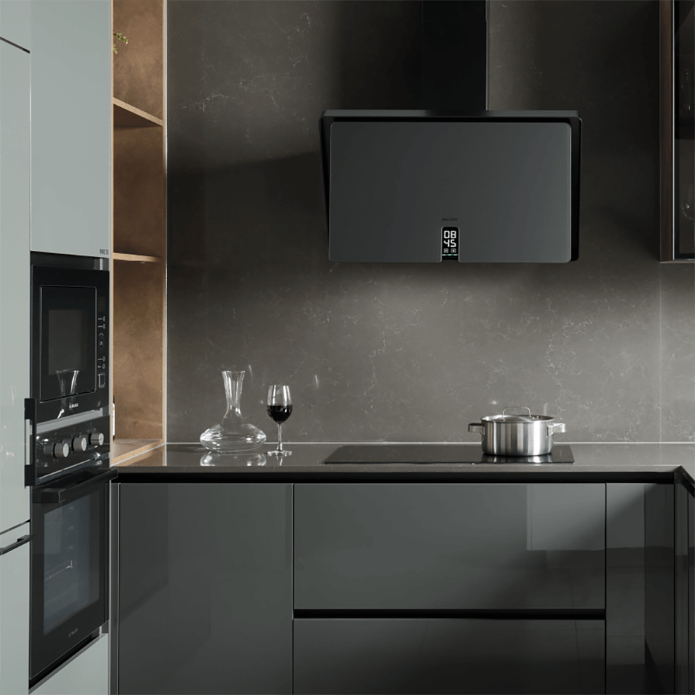 Máy hút mùi Malloca áp tường nhập khẩu Ý, điều khiển remote, công suất 850m³/h. (Giá đã bao gồm VAT)