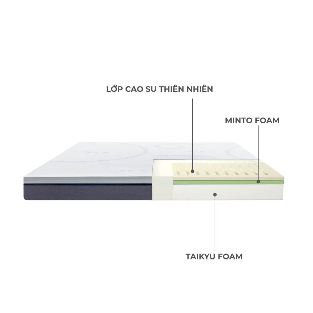 Đặc biệt, ngoài độ cao vừa vặn 15cm, điểm nhấn độc đáo của nệm IKI Hybrid còn nằm ở sự kết hợp hài hòa giữa TAIKYU foam và MINTO foam, mang đến sự thoải mái và tiện nghi hoàn hảo. Trong đó, lớp TAIKYU foam vững chắc được thiết kế nằm dưới đáy nệm, cung cấp sự nâng đỡ tối ưu và hạn chế tình trạng xẹp lún, mang đến cho bạn giấc ngủ trọn vẹn. Lớp MINTO foam mềm hơn ở bề mặt hỗ trợ ôm trọn cơ thể theo đường cong sinh lý, đảm bảo cột sống và hệ khung xương luôn trong trạng thái tự nhiên nhất ở mọi tư thế nằm.
