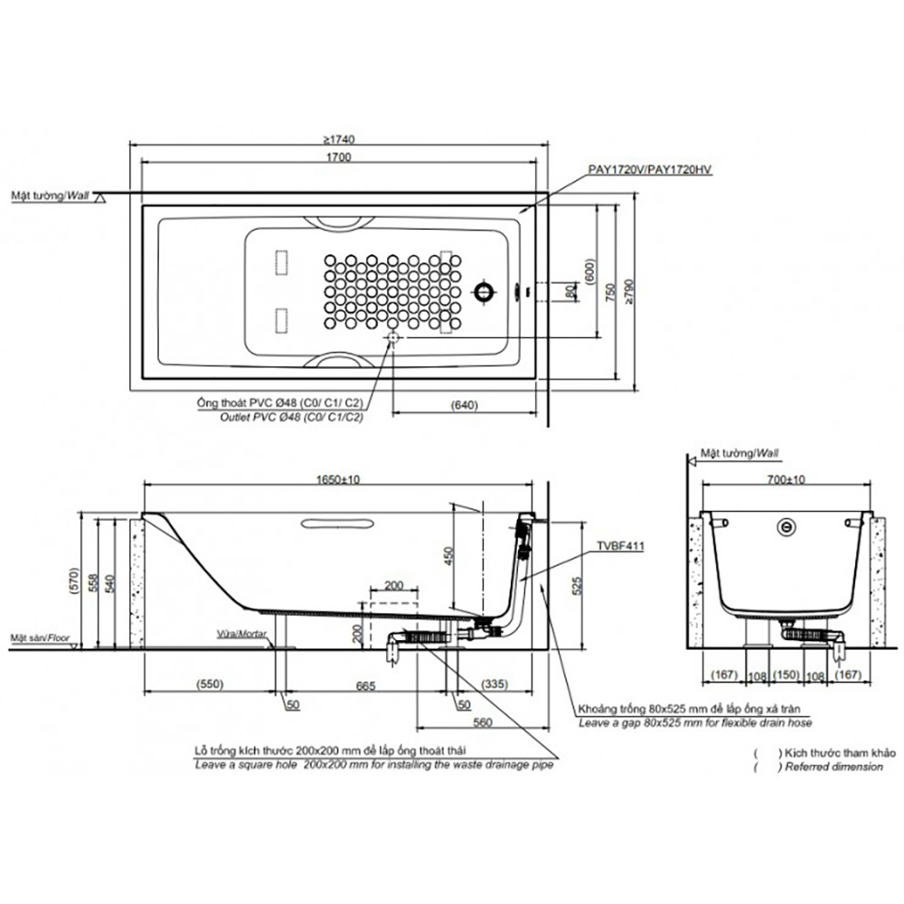 Bồn Tắm Xây TOTO PAY1720HV/TVBF411