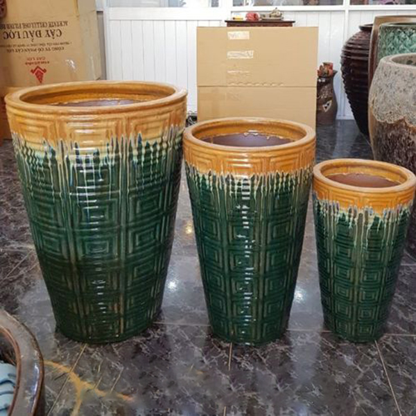 Chậu sứ chóp cụt vân hình chữ nhật Vườn Gốm Việt