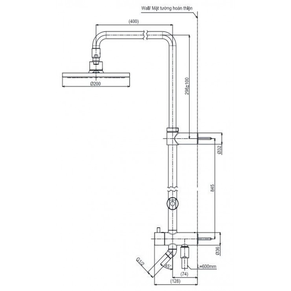 Bộ sen tắm cây nóng lạnh, không kèm vòi xả, mạ Niken-Crom. (Giá đã bao gồm VAT).
