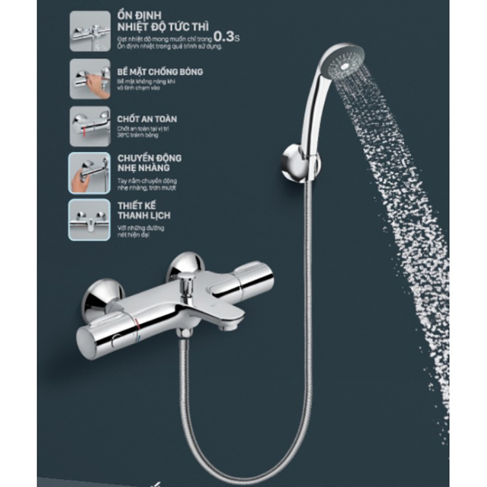- Sen tắm với công nghệ trộn nhiệt tự động, giúp nước không bao giờ nóng quá 49 độ C, duy trì mức ổn định nhiệt ở 38 độ C.
