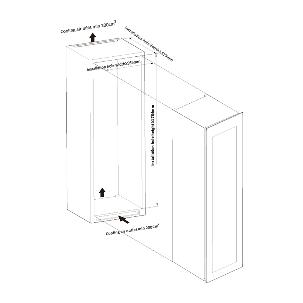Tủ đứng bảo quản rượu vang âm tường/tủ, sức chức tối đa 95 chai (241L), công suất 180W. (Giá đã bao gồm VAT)
