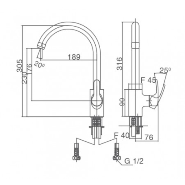 - Có thể xoay dễ dàng giữa 2 bồn rửa.