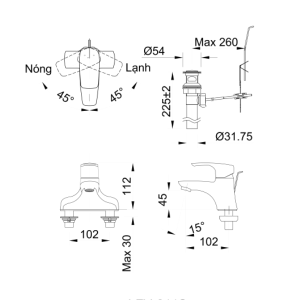 - Vòi chậu có van tắt mở tiện lợi, phù hợp với chậu 3 lỗ.