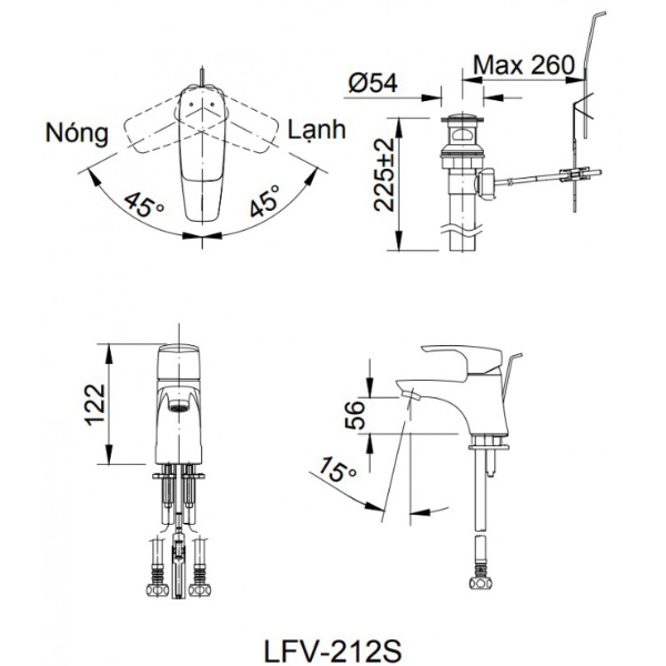Vòi Chậu Đơn Nóng Lạnh LFV-212S