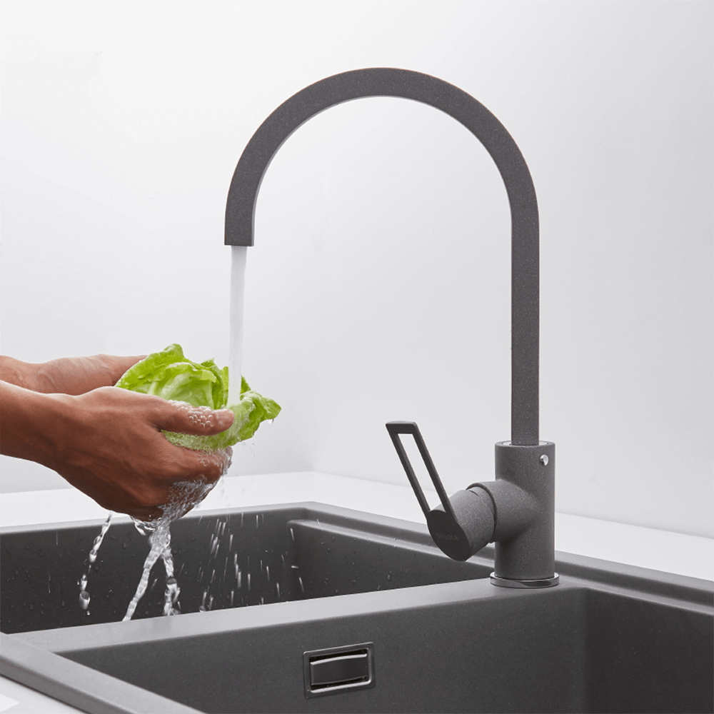 Vòi rửa chén nóng lạnh được làm từ đồng thau sơn giả đá, nhập khẩu từ Ý. (Giá đã bao gồm VAT)